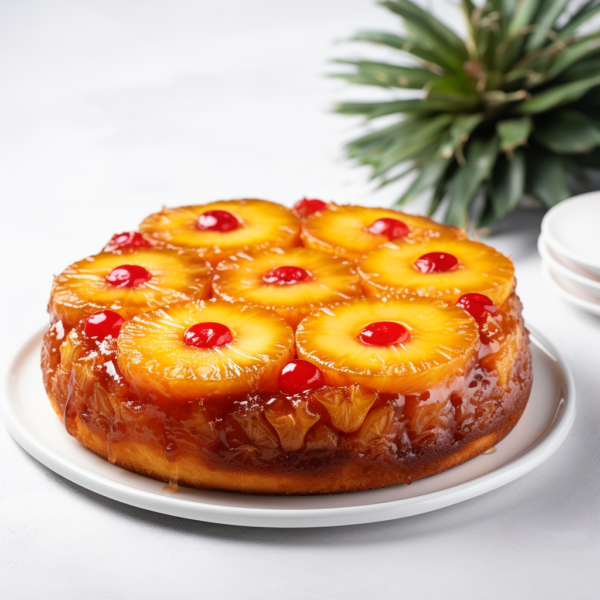 Taste the tropical delight in every bite with this mouthwatering pineapple upside down cake! This sweet treat starts with a buttery, vanilla cake base topped with rings of juicy pineapple and maraschino cherries drizzled in caramelized brown sugar.